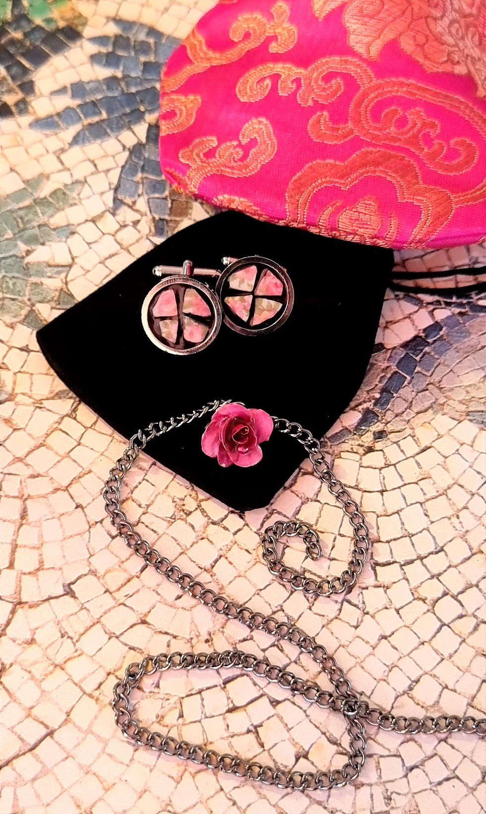 Cufflinks - Micro-mosaic set in round rhodium plated bases - pink roses